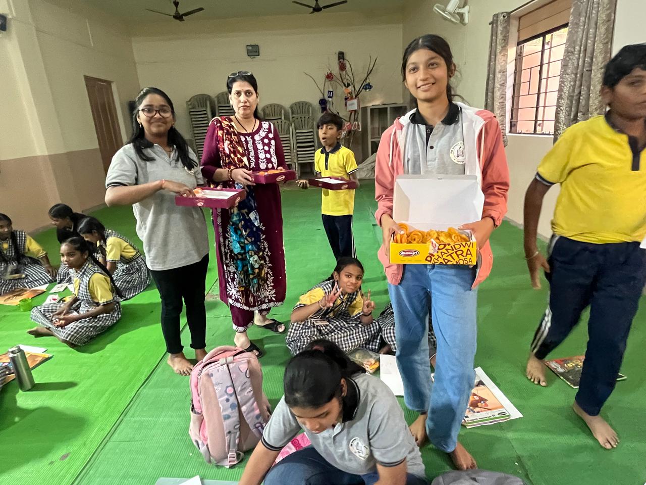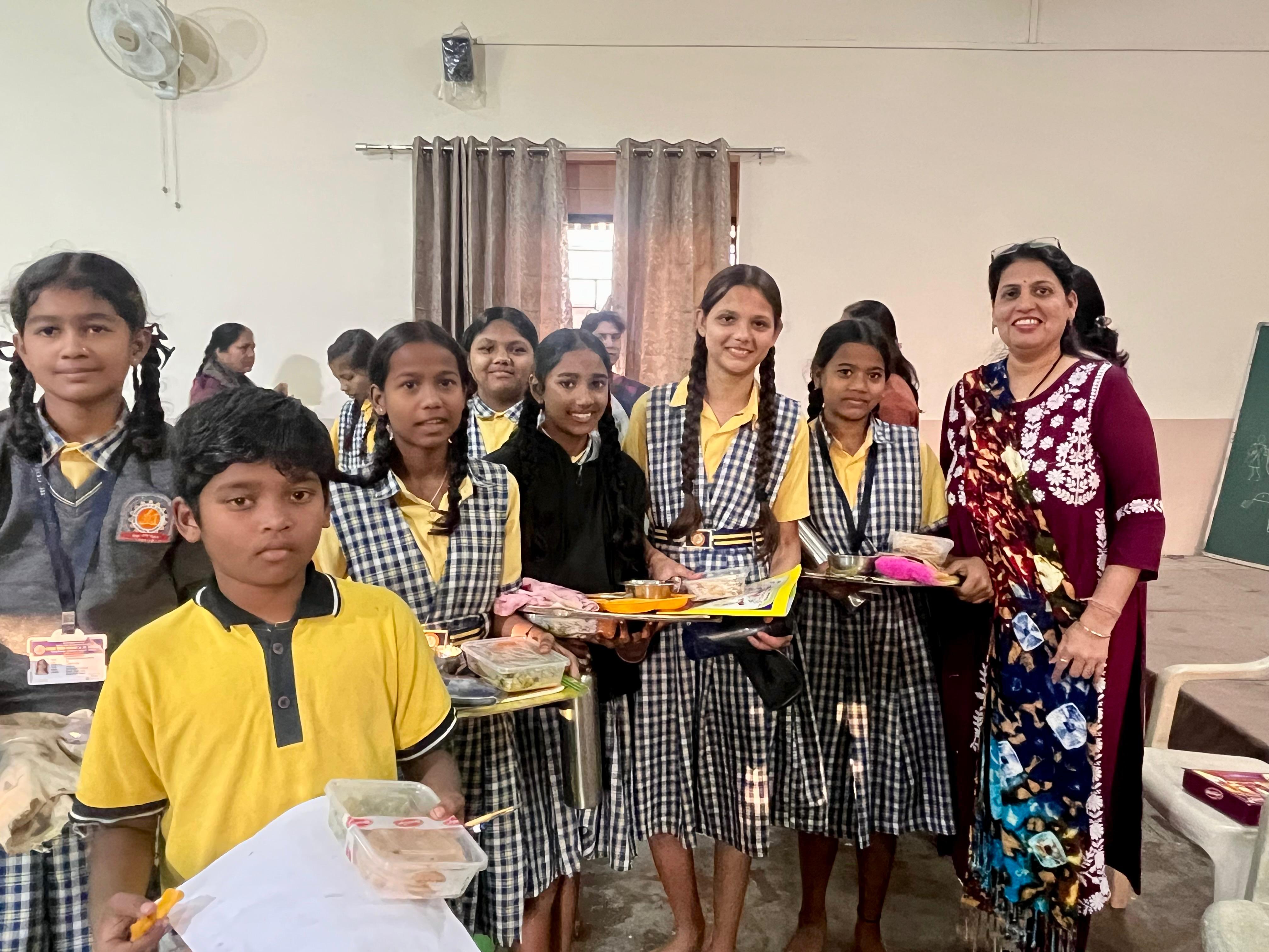The students relished a tasty, freshly prepared lunch along with a variety of sweets, lovingly arranged by Yogita. Laughter, smiles, and gratitude could be seen on every face.